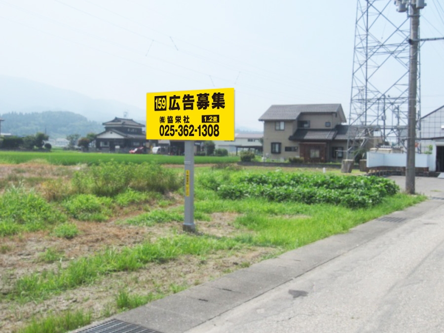 交通量の多い中条黒川バイパス沿いの野立て看板!