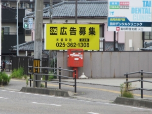 見通しも良く、注目度の高い野立て看板となります。