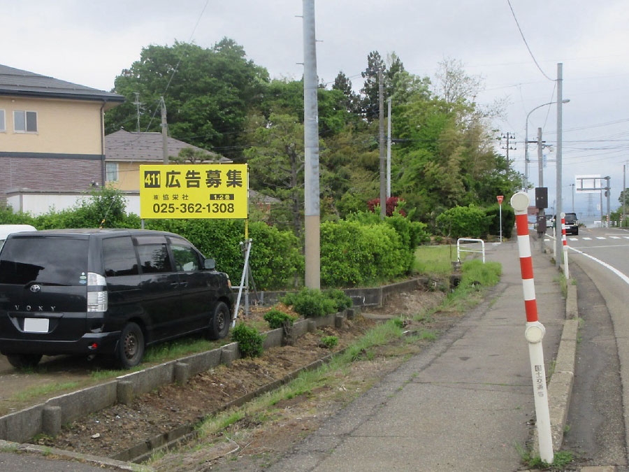 見通しの良い場所で、注目度の高い野立て看板となります。