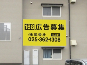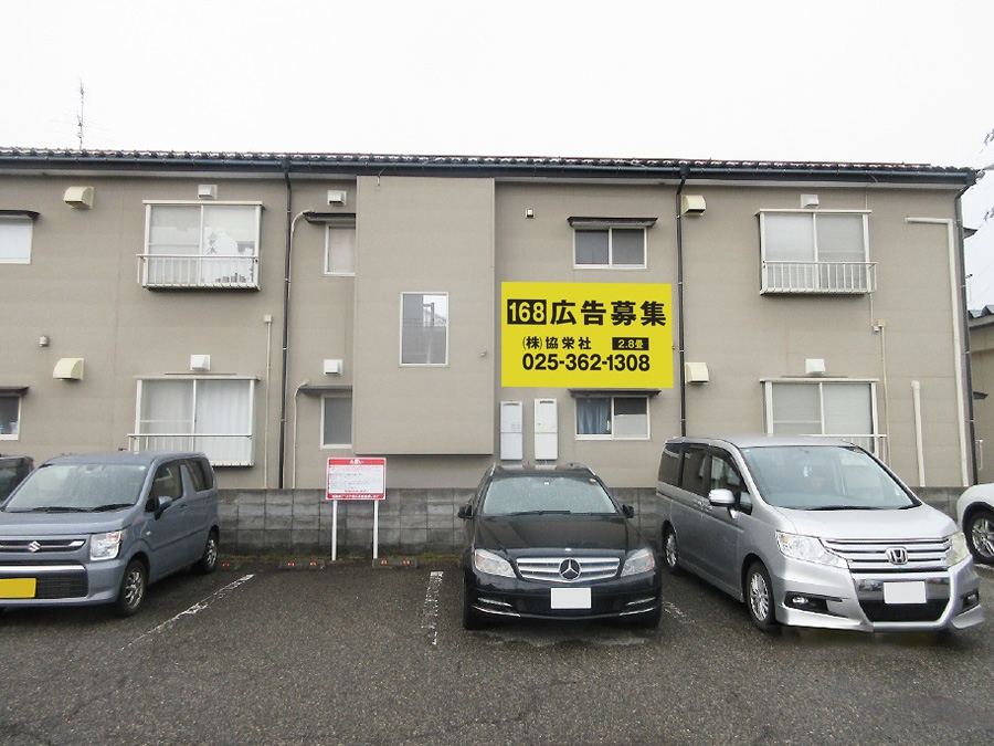 笹出線沿いのダイソー 新潟県庁前店裏にある賃貸アパートの壁面看板。