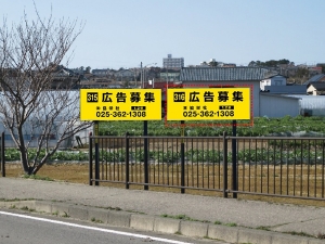 | 備考 | 2016年3月28日 アルミ枠+アルミ複合板で設置 ※借地代金、看板保険代金、現状復旧費用、申請費用、管理費用はすべて月掲載料に含まれます。 ※シート代+取付費+デザイン費=初回製作費になります。 |