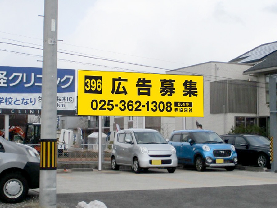 | 備考 | アルミ枠+アルミ複合板の板面で、新規設置いたします。 ※借地代金、看板保険代金、現状復旧費用、申請費用、管理費用はすべて月掲載料に含まれます。 ※シート代+取付費+デザイン費=初回製作費になります。 |