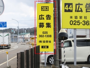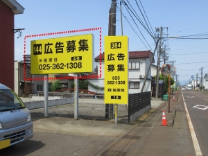 道向かいにコンビニもあり、注目度の高い野立て看板となります。